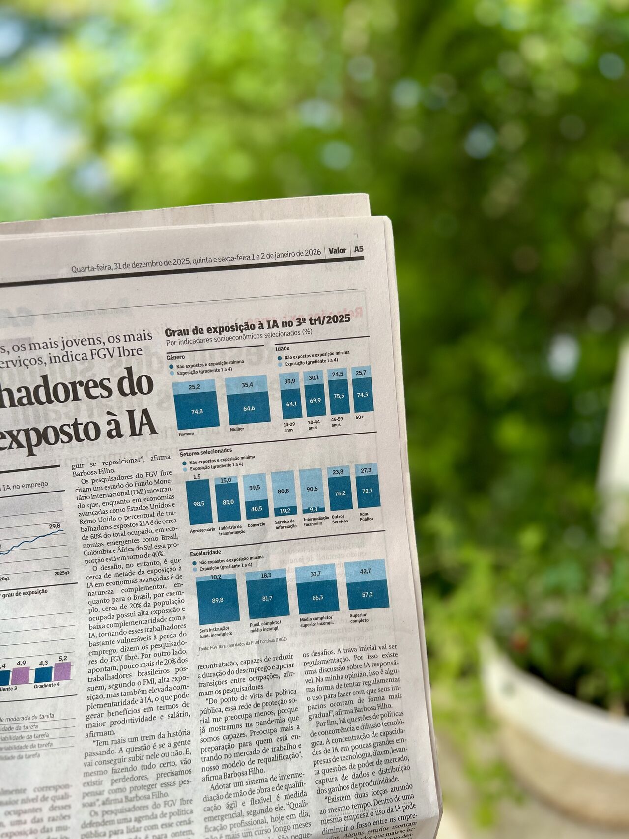 Um estudo recente, conduzido pela FGV Ibre, adaptou uma metodologia internacional da Organização Internacional do Trabalho (OIT) e chegou a um dado que merece nossa total atenção: cerca de um terço dos trabalhadores brasileiros já está em ocupações expostas ao impacto da Inteligência Artificial.